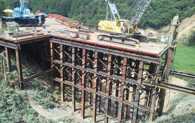 During civil engineering and building foundation work, the excavated ground is supported by "earth retaining shoring" to prevent the soil from collapsing due to earth pressure and water pressure. This includes erection and dismantling of "earth retaining shoring."